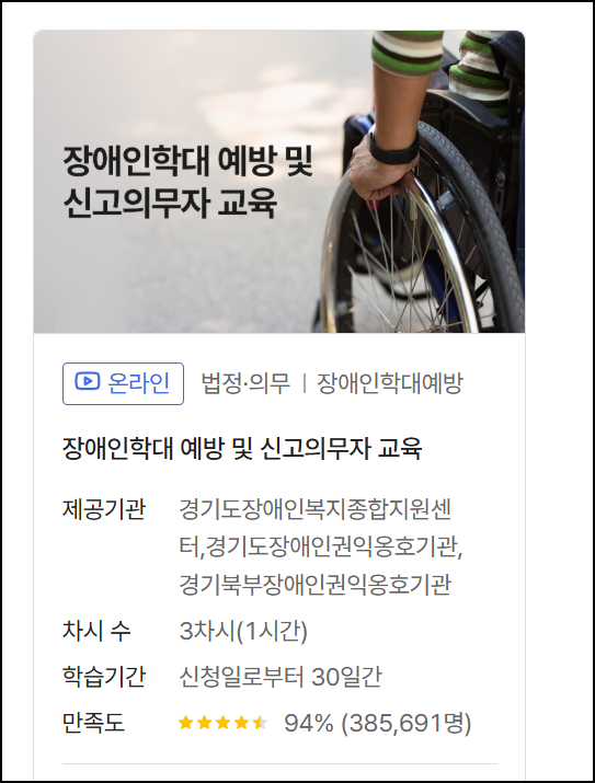 | 장애인 인식 개선 교육 | 전 직장인 |