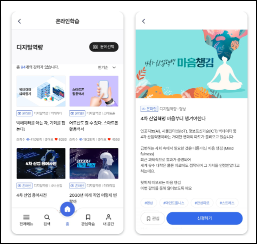 - 강좌 수강: PC 웹과 동일한 1,700여 개 강좌 이용 가능
