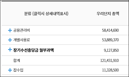 | 기타공용비 | 위에 포함되지 않는 잡비용 | 커뮤니티센터 운영비 등 |