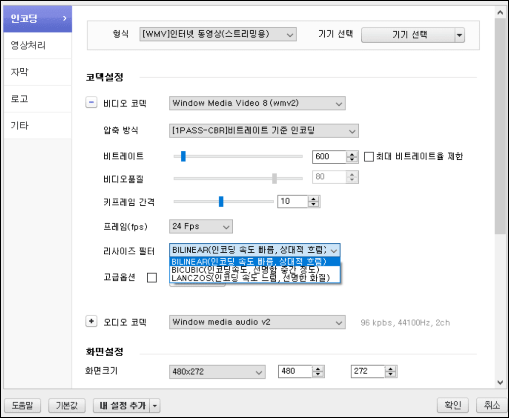 4) Xvid 인코딩 시 초반 화면 멈춤
