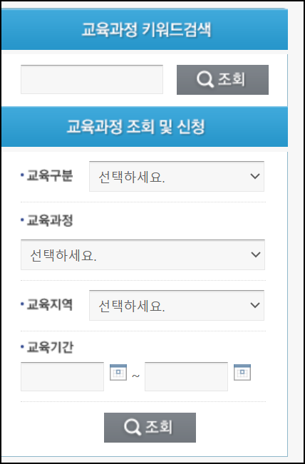 - STEP 3 교육 일정 조회 : 교육 종류, 지역, 일정 검색