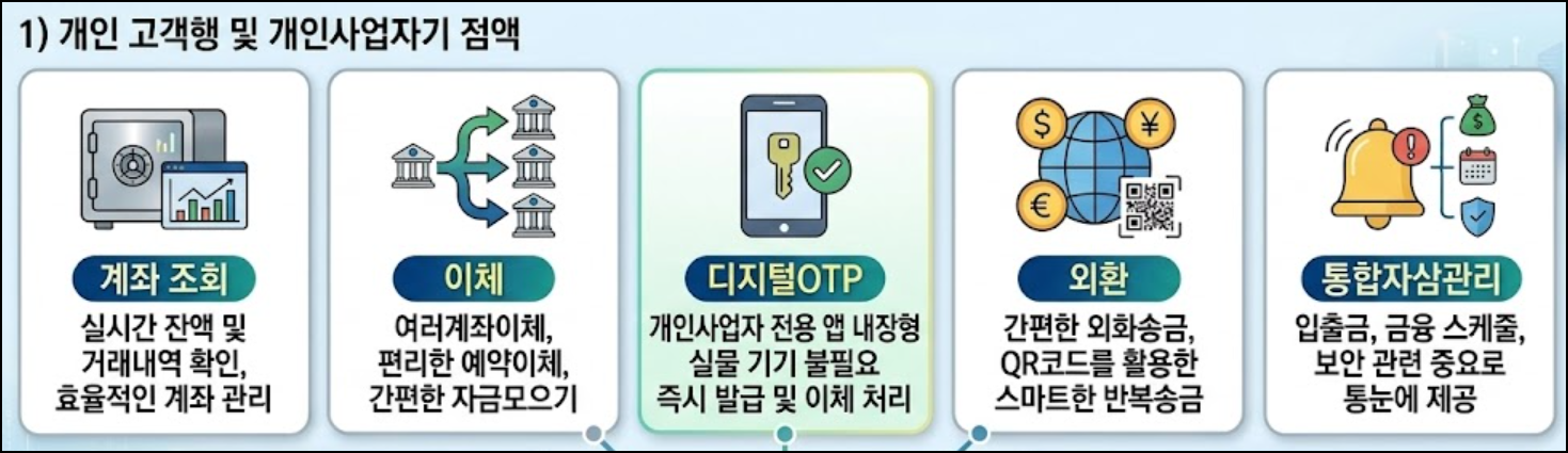 | 디지털OTP | 개인사업자 OTP 앱 내장 |