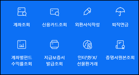 거래확인서·예금잔액증명서·부채잔액증명서·원천징수영수증 등을 온라인으로 발급받을 수 있습니다.