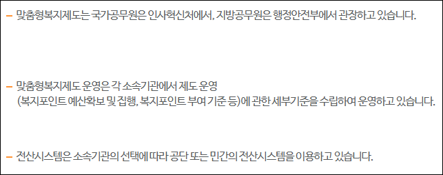 - 주요 기능: 복지 포인트 사용, 복지 상품 신청, 연간 예산 확인, 이용 내역 조회