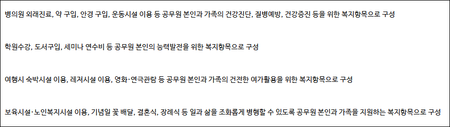- 주요 기능: 복지 포인트 사용, 복지 상품 신청, 연간 예산 확인, 이용 내역 조회