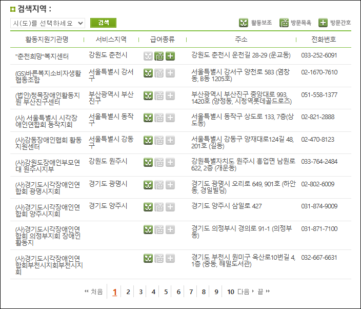 기관 검색 선택한 지역 내 등록된 활동지원사 교육기관 목록이 표시됩니다.