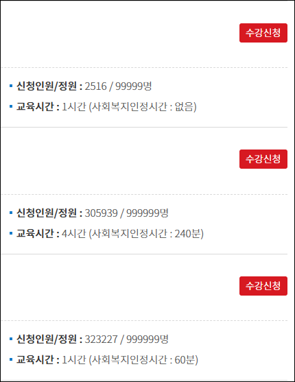 본 사이트 접속시 메인화면 안내를 통해 누구나 쉽게 온라인 교육을 수강할 수 있습니다. 그게 긴급복지, 노인인권, 신고의무자, 기타교육을 지우너하고 있으며, 각각 탭을 통해 상세한 교육과정들을 살펴 볼 수 있습니다. 또한 본 교육은 과정별 수강기간이 상이할 수 있으므로 본인의 수강과정의 정보를 명확히 확인하는것이 바람직합니다.