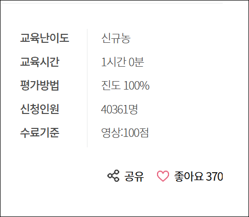 - 이수 확인: 교육 이수 후 시스템 자동 확인 또는 이수증 제출