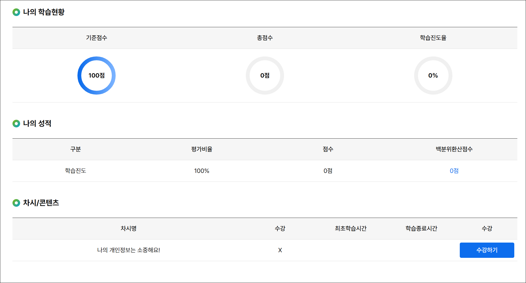 - 교육과정 내 수료퀴즈 통과