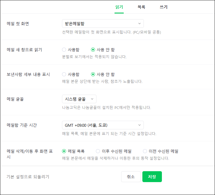 | 메일함 분류 | 스마트 분류함 | 쇼핑, 금융, SNS 등 자동으로 분류 | 광고 메일과 중요 메일을 구분 |