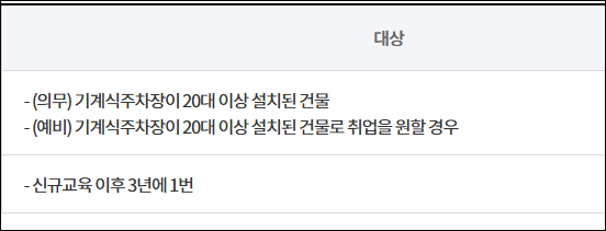 • 대상: 기계식 주차장 관리 업무를 수행하려는 사람