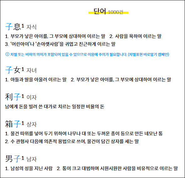 결과 정보의 풍부함 음, 훈, 뜻, 관련 단어, 예문, 유의어 공급