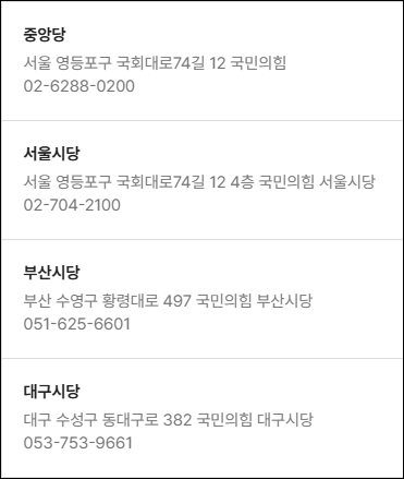 | 소속 | 당원 등록 시 지역구나 지구당 이름 (없으면 생략 가능) |