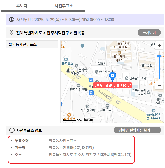| 주요 포털 검색 | 네이버, 다음 등에서 ‘사전투표소 + 지역명’으로 검색 시 지도 및 정보 연결 |