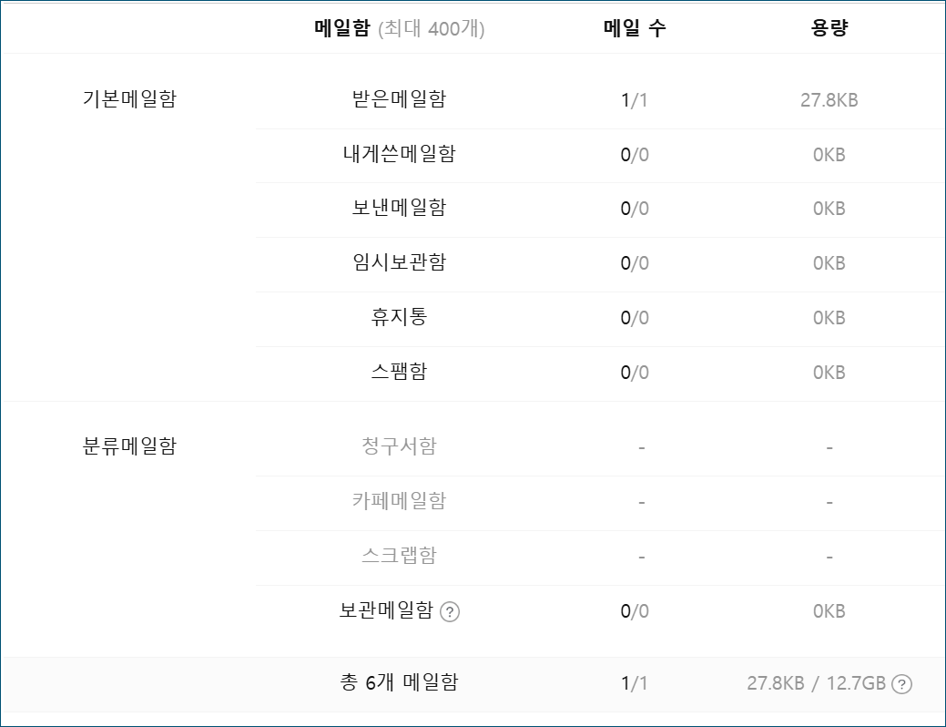- 받은 메일함: 기본 수신 메일 자동 분류