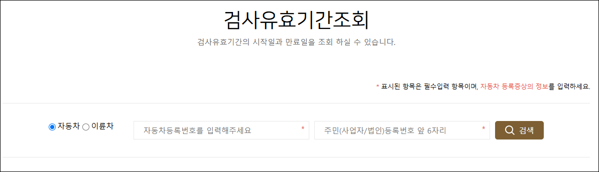 자동차등록증 우측 하단에 ‘검사유효기간’이 명확하게 기재되어 있습니다. - 한국교통안전공단 홈페이지 이용