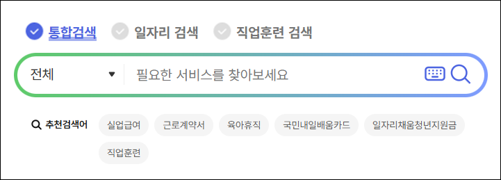 • 고용보험 서비스 : 실업급여 신청, 고용장려금 조회, 고용보험 민원 처리 등이 온라인으로 간편하게 처리