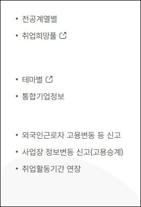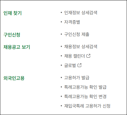 • 기업 대상 고용지원 : 채용공고 등록, 고용장려금 신청, 재직자 훈련 연계 등 기업 지원 서비스도 포함