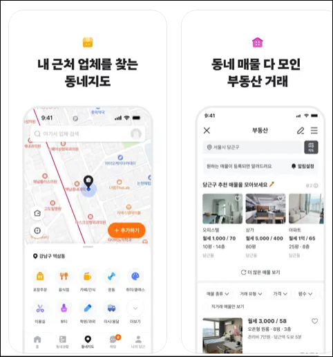 동네생활 커뮤니티 동네 주민들과 자유롭게 소통할 수 있는 게시판 기능