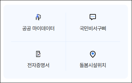 - 전자문서지갑: 전자증명서의 발급 및 관리를 할 수 있습니다.