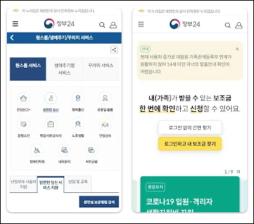 - 보조금24: 나와 가족이 받을 수 있는 정부 혜택을 확인할 수 있습니다.
