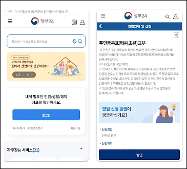 정부24 모바일 앱은 언제 어디서나 손쉽게 다양한 정부 서비스를 이용할 수 있습니다. 모바일 앱을 통해 국민들은 복잡한 행정 절차를 최소화하고, 민원 신청부터 정책 정보 조회, 각종 공공 서비스 신청까지 빠르게 처리할 수 있습니다. 바쁜 일정의 현대인들에게는 정부24 앱을 통해 시간과 장소에 구애받지 않고 효율적으로 업무를 처리할 수 있는 장점을 갖습니다.