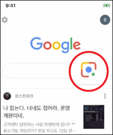- 렌즈 아이콘(🔍📷)을 선택합니다.