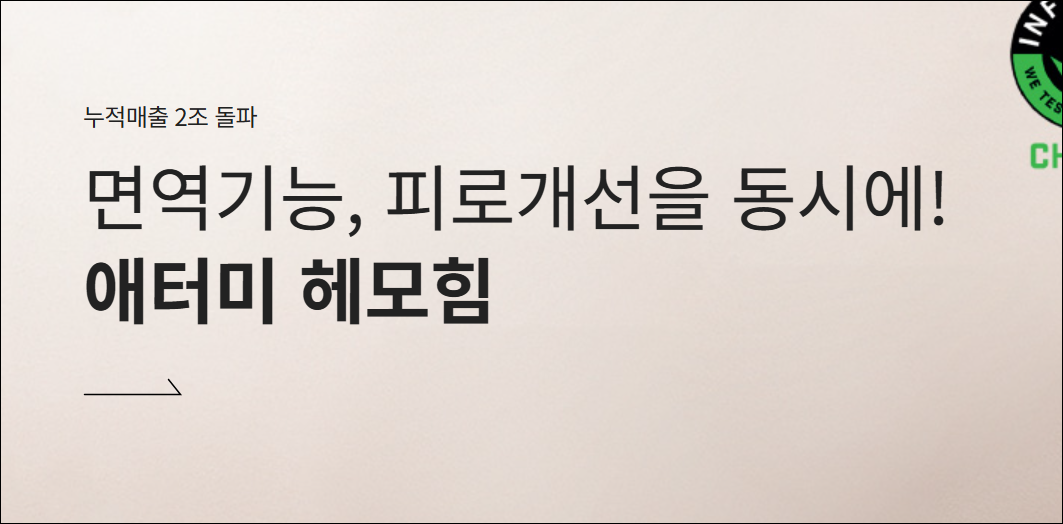 | 헤모힘 | 면역력 증진에 도움, 누적 판매 500만 병 이상, 23개국 특허 등록 |