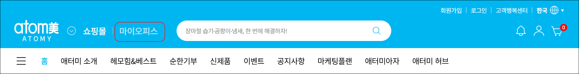 애터미 공식 홈페이지(https://kr.atomy.com/main)는 애터미 회원이라면 누구나 쉽고 편리하게 이용할 수 있도록 설계된 종합 쇼핑 플랫폼입니다. 신제품 정보, 다양한 이벤트 소식, 카테고리별 상품 검색, 개인 맞춤형 마이페이지 등 모든 핵심 기능을 통합 제공하고 있습니다. 본 사이트에서는 제품 구매뿐 아니라 사업 운영, 고객지원, 회원관리까지 한 곳에서 모두 해결할 수 있습니다.