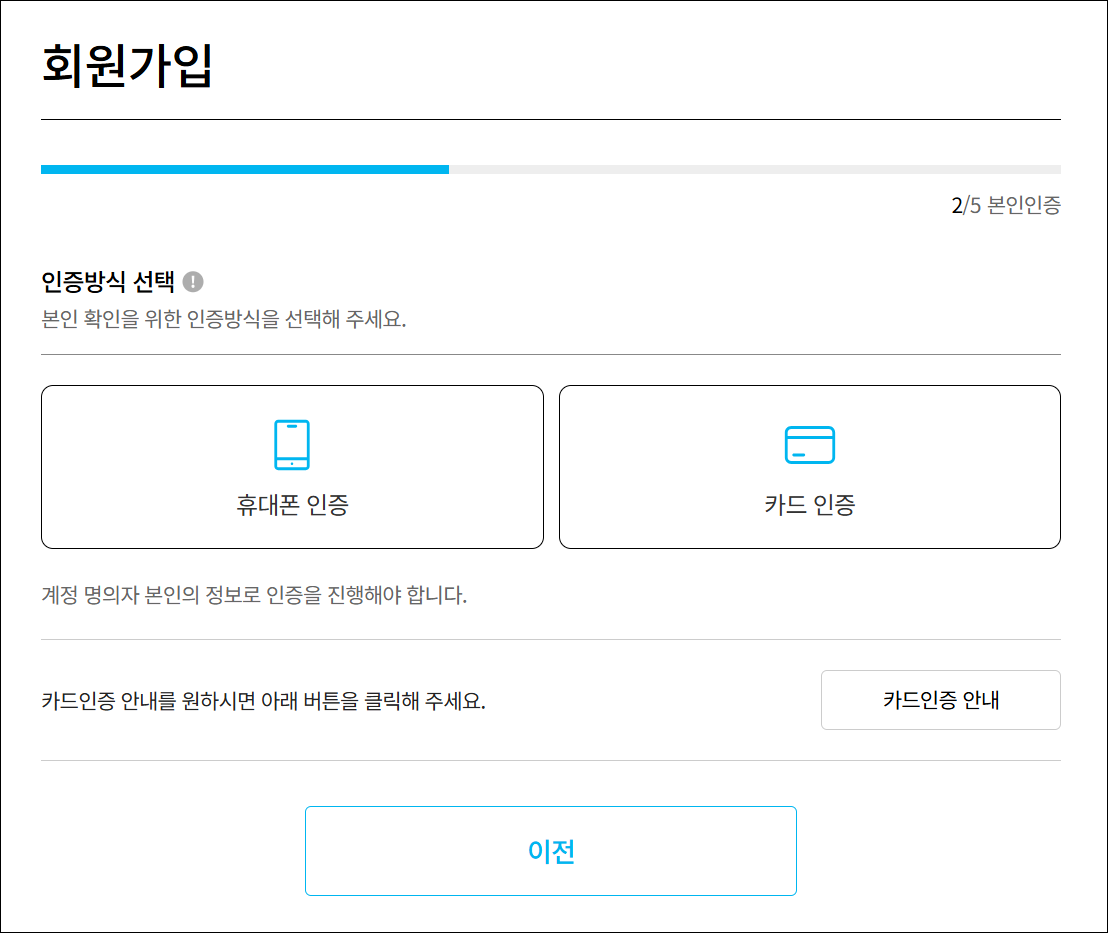 - 본인 인증 절차(신분증/휴대폰 인증)